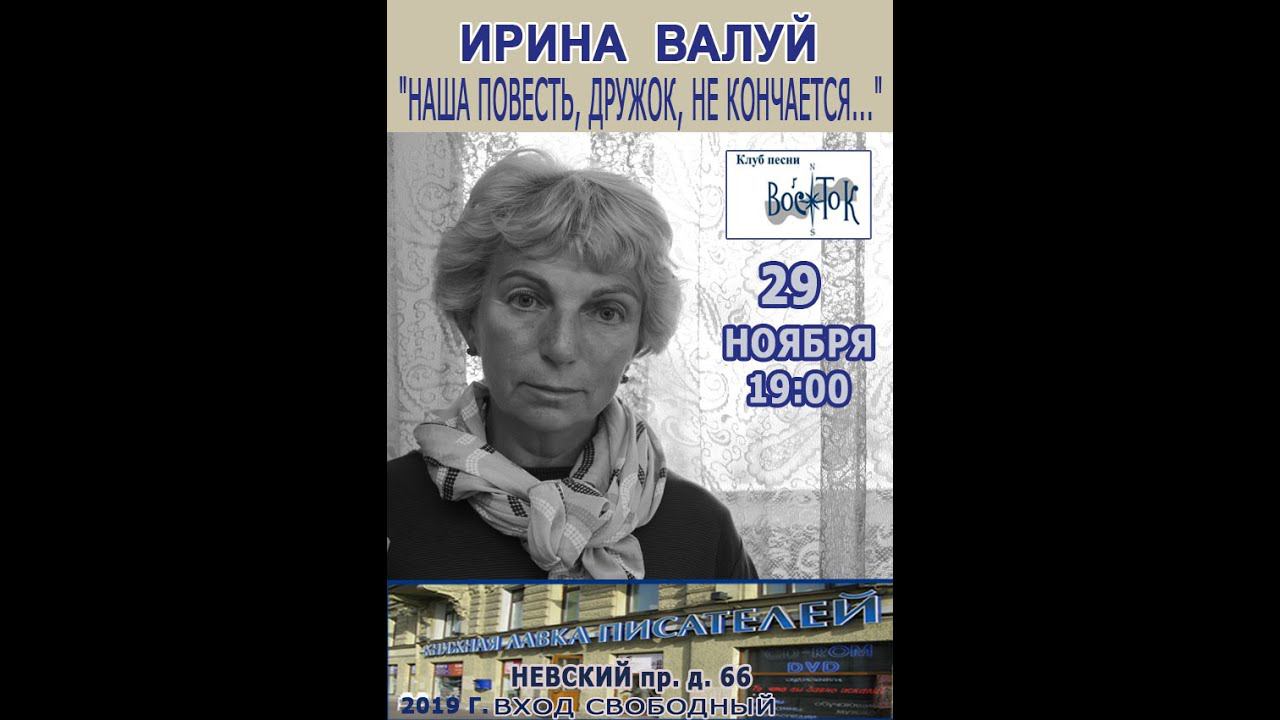 Ирина Валуй в Книжной лавке писателей. "Наша повесть, дружок, не кончается..." Клуб песни "Восток" с программой "Час авторской песни по пятницам". Санкт-Петербург, Невский пр., 66. 29 ноября 2019 г. Запись видео - Алла Левитан.