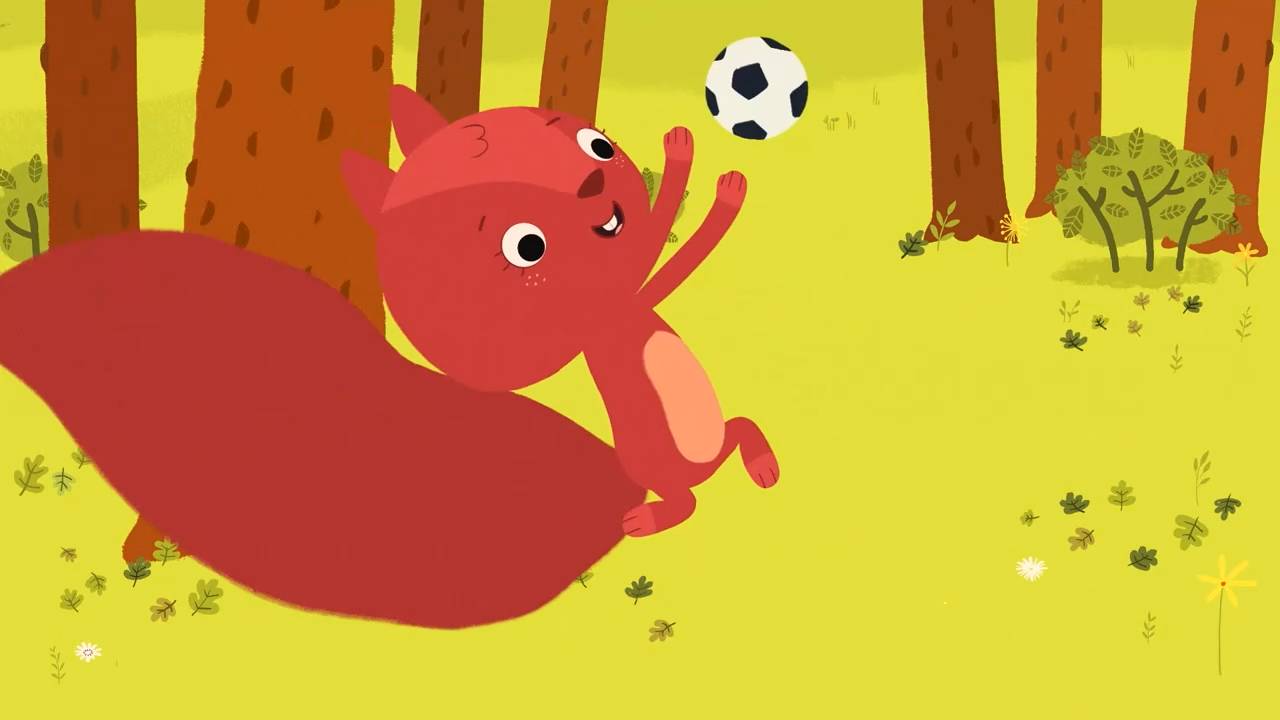 Мишо и Робин играют в мяч, как вдруг тот исчезает в дереве. Белочка возвращает мяч, и Робин приглашает ее поиграть. Мишо чувствует себя брошенным и уходит играть один. Робин и Белочка весело играют, и Мишо понимает, что он ревнует. Он признает, что с друзьями играть веселее и хочет снова к ним присоединиться, но Робина и Белочки уже не видно. Вскоре они возвращаются с корзинками, полными малины.