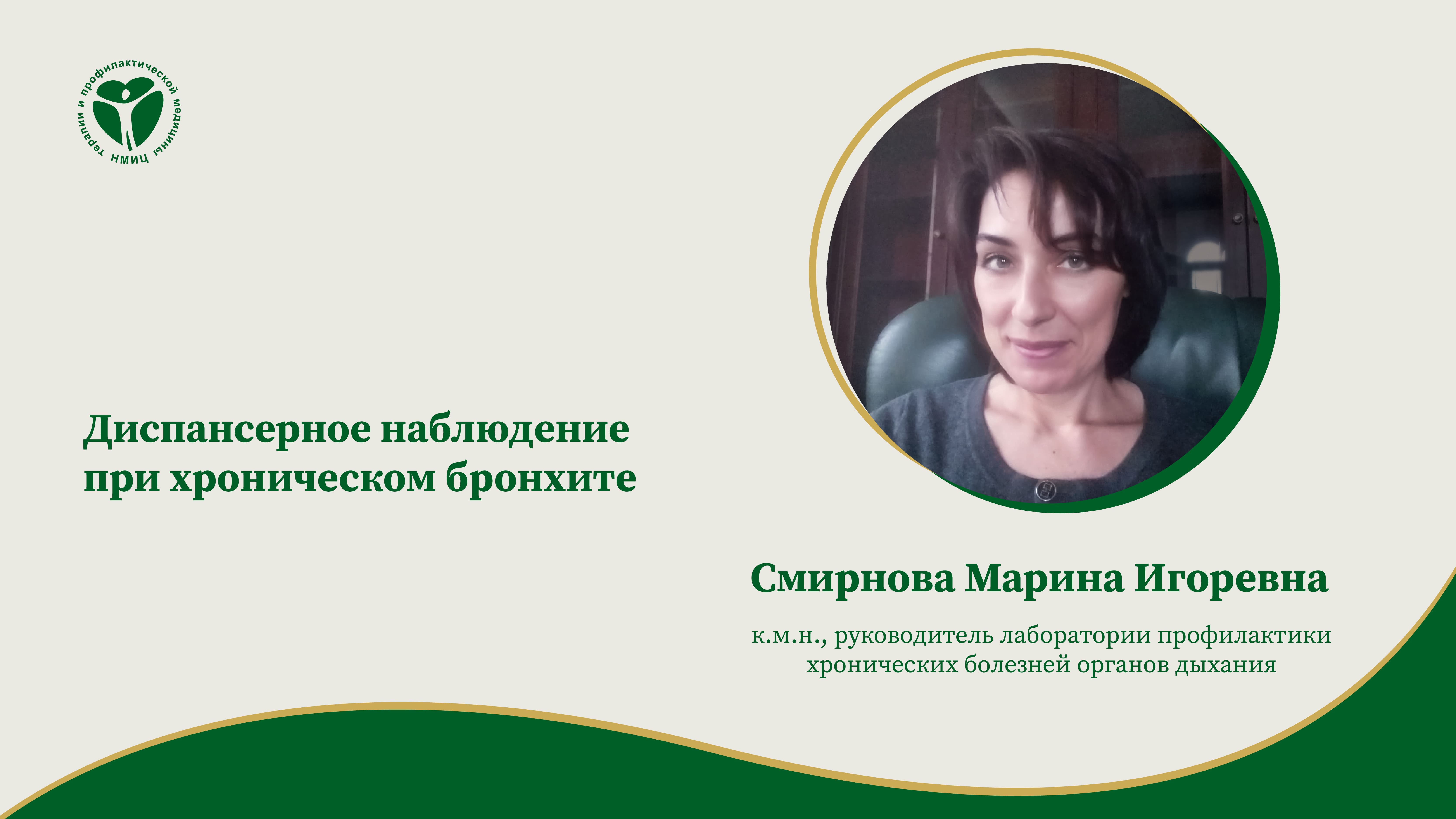 «Диспансерное наблюдение при хроническом бронхите», семинар от 11.04.2023. Лектор: Смирнова Марина Игоревна — к.м.н., руководитель лаборатории профилактики хронических болезней органов дыхания ФГБУ «НМИЦ ТПМ» Минздрава России.