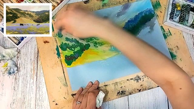 Солнечный пейзаж. Рисуем масляной пастелью. Бесплатный урок рисования.