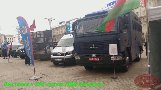 Техника, представленная в рамках выставки, приуроченной к 106-летию МВД Беларуси. Geely Emgrand 7, Toyota Camry V6, Geely Coolray, Geely Atlas PRO 260T, Geely Tugella AWD, Geely GE, BMW 5 GT 550i, BMW 5 GT 340i, Mercedes-Benz E450, Yamaha FJR, Купава-573161 на шасси МАЗ-534025, "Гермес" на базе MAN TGE 3.140, "Рубеж" на базе Toyota Hilux, СПМ-2 на базе ВПК-233036 "Тигр", Ford F350, ВПК-233136 "Тигр-М", МЗКТ-490100-017 (VOLAT V1), БТР-80 (ГАЗ-5903). Видео от наших коллег, канала "АвтоДвиж".