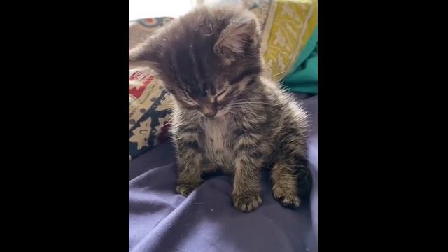 Котёнок засыпает сидя