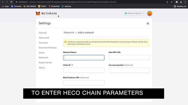 Adding HECO to Metamask