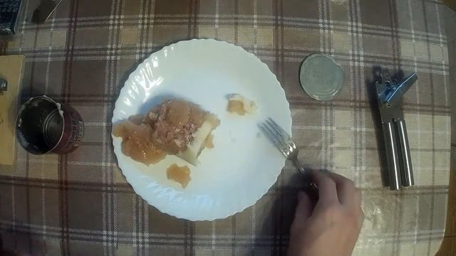 Пробую консервированную конину