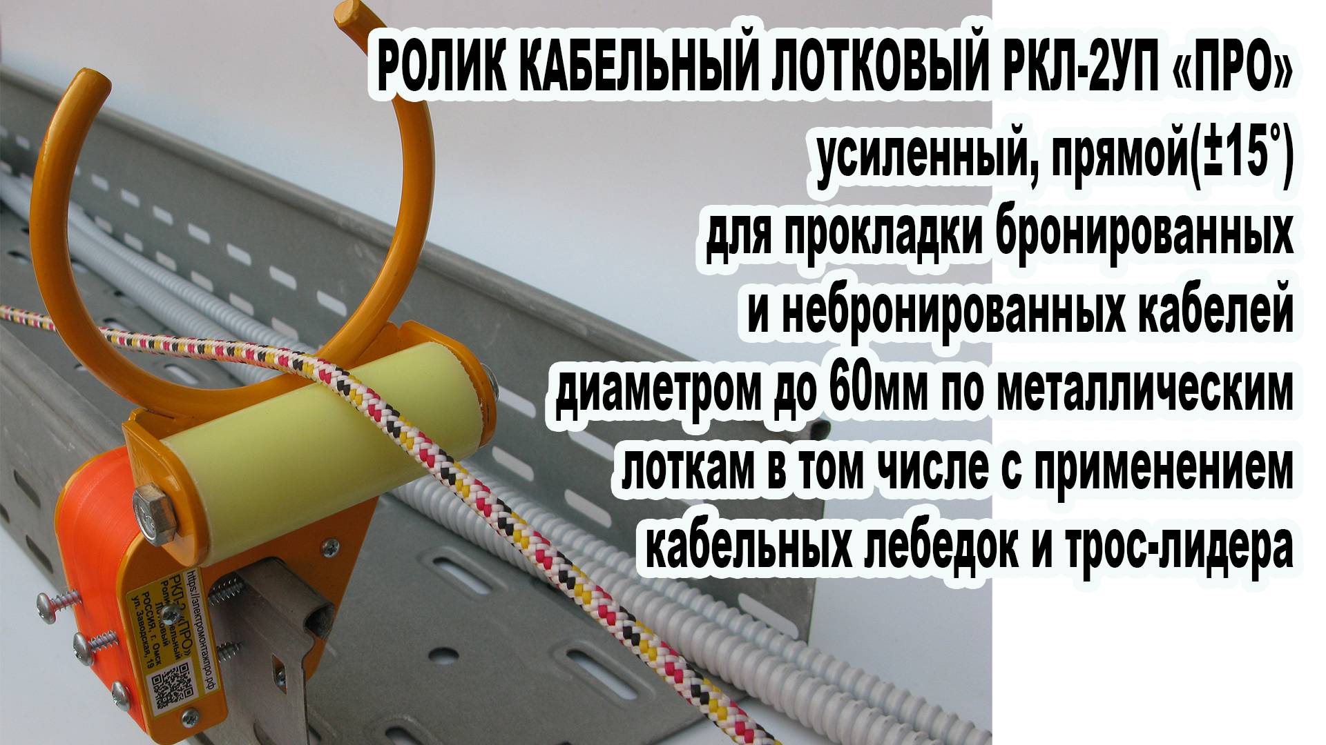 Ролик Кабельный Лотковый РКЛ-2УП -"PRO" Подробнее об устройствах для профессиональной прокладки кабеля https://электромонтажпро.рф/001 Наш магазин «Электромонтажпро» на Яндекс Маркет https://market.yandex.ru/business--elektromontazhpro/92907157 Наш магазин «Электромонтажпро» на Ozon https://www.ozon.ru/seller/ooo-agrokom-1842269/stroitelstvo-i-remont-9700/?miniapp=seller_1842269 Ролик Кабельный Лотковый РКЛ-2УП -"PRO" (усиленный прямой) предназначен для облегчения работ по прокладке бронированных и небронированных кабелей диаметром до 60 мм по прямолинейной или с незначительным до ±15° отклонением от прямолиней- ной траектории по кабельным лоткам в том числе с использованием трос-лидеров и кабельных лебедок. В Ролике РКЛ-2УП -"PRO" применена оригинальная быстросъёмная конструкция крепления к металличенким лоткам обеспечивающая высокие скорость монтажа и прочность крепления.