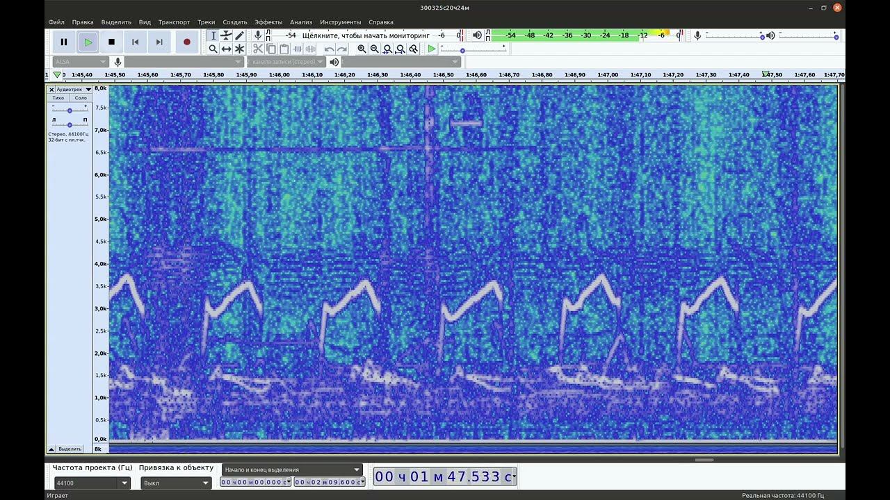 ЭНЧ звук 30-03-2025 старт20:24(UT+3h) 36ч - ускорено 1000Х - 1 Гц = 1000 Гц