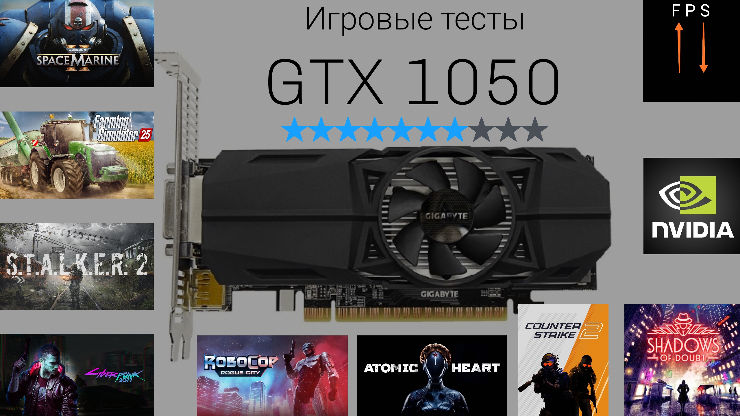 GTX 1050 vs Stalker 2/RoboCop/CS2/Warhammer/Atomic Heart/Farming 25/Cyberpunk 2077/fps