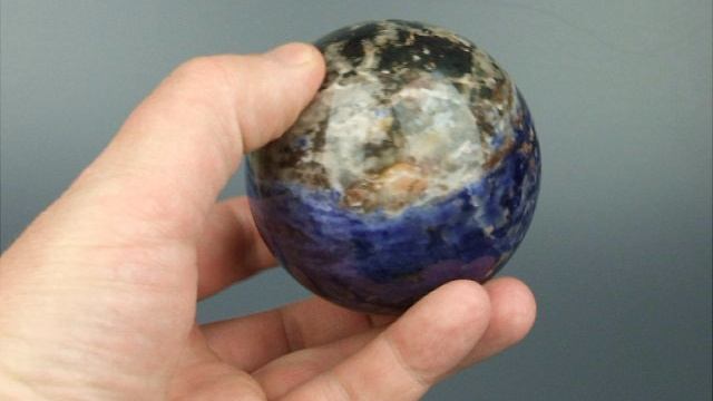 Шар из натурального камня Содалита на подставке диаметром 70 мм (844
