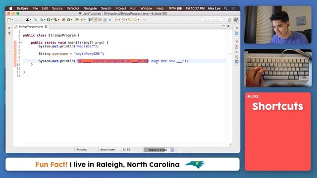 $1,000 OFF ANY Springboard Tech Bootcamps with my code ALEXLEE. See if you qualify for the JOB GUARANTEE! ? https://bit.ly/3HX970h Here is my string java tutorial! In this video I teach you the basics of strings in java! ?Start practicing now with 10 free java programs - http://alexlorenlee.com/ ? Source Code - https://github.com/alexlorenlee/JavaTutorialCode/blob/master/Strings/StringsProgram.java Strings in java are just characters grouped together than you can use for printing, storing and manipulating. Examples of Strings include a username, password, description or anything with text! The name "string" can be a little tricky to get used to, but don't worry too much about it right now! They aren't too bad :) If you followed along, congrats! You learned-by-doing! I hope you enjoyed this string java tutorial for beginners! I like to have a nice mix of tutorials and actual projects for you all :) Do you want to learn how to code from scratch, in Java? Check out my Java Tutorial For Beginners: https://youtu.be/woJb2hAfkO0 Did you enjoy this string java program? - Full Java Tutorial For Beginners Playlist: https://youtube.com/playlist?list=PL59LTecnGM1NRUyune3SxzZlYpZezK-oQ&si=6OSbyiJxFsTjqL_9 Free Tips: https://bit.ly/3U6HXcb Disclosure: The Springboard link provided is linked to my affiliate account & supports the channel. ~ Alex Lee