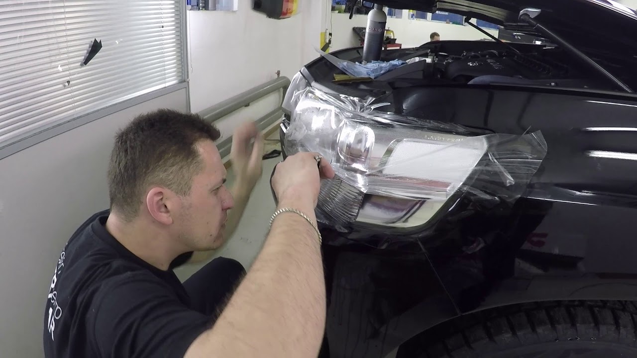 Защитная прозрачная пленка на фары. Оклейка защитной полиуретановой пленкой SunTek PPF. Не желтеет. Клеим фары. обзор ремонт тонировка