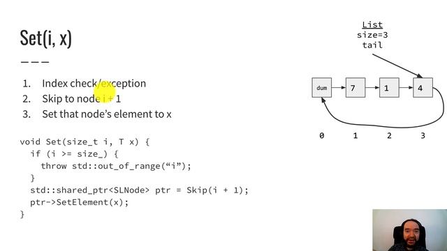 Implementation and analysis of singly-linked list operations that take O(n) time. Slides: https://docs.google.com/presentation/d/11QAiogQAiis65ae1ktqWnV1Qfz8T4cjyCmkseCxSJsY/edit?usp=sharing