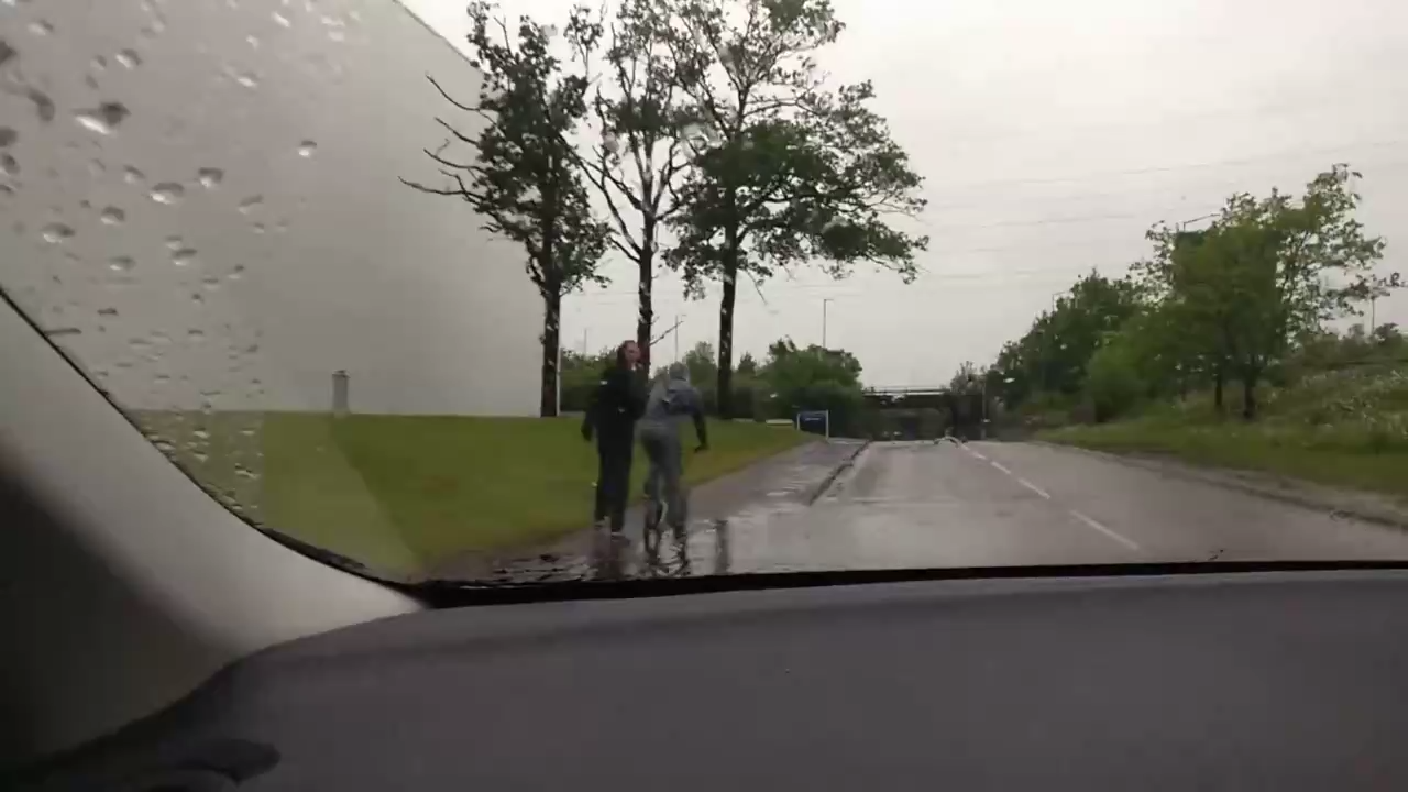 Два товарища заблокировали дорогу, а в ответ на замечание ударили по машине. Хозяин машины решил им немного отомстить. Они как раз проходили мимо лужи... #месть#машина#лужа