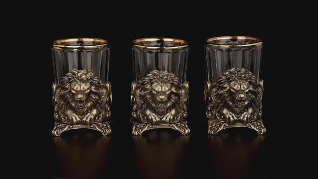 Стопки Лев Царский 3 или 6 шт (Латунь, стекло)