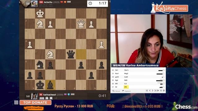 Титульный вторник на chess.com 11 туров 3+1 Поддержать канал: https://www.donationalerts.com/r/karinachess1 Подписаться на мой канал: https://www.youtube.com/channel/UChor8u_hhgrjX2lt0QLzZHA?sub_confirmation=1 Стать спонсором канала и получить доступ к бонусам: https://boosty.to/karinachess Обучающий курс "Пешечные структуры" http://bit.do/pawns-structures Рестрим: https://www.twitch.tv/karinachess1 Рада приветствовать Вас на канале женского международного гроссмейстера, международного мастера Карины Амбарцумовой! Я - профессиональная шахматистка и тренер. Здесь вы сможете найти обучающие видеоуроки по шахматам, комментарии турниров, стримы моей игры в блиц шахматы. Подписывайтесь на мои странички в соц.сетях: ВКонтакте: https://vk.com/karinachessclub Twitch: https://www.twitch.tv/karinachess1 Почта для связи: karinachess@mail.ru Поддержать канал: https://www.donationalerts.com/r/karinachess1 Мой сайт: http://chesscoach.ru/