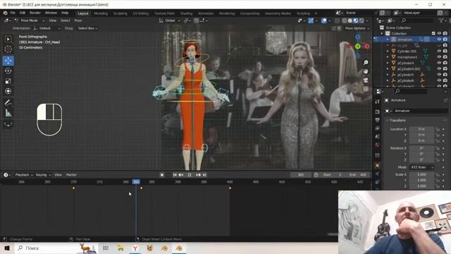 BLENDER 3.6 Анимация дуэта певицы и музыканта в сцены