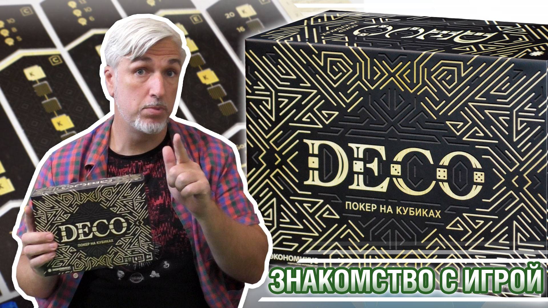 Открываем новенькую коробочку, смотрим на компоненты оригинального издания и обзорно знакомимся с правилами настольной игры «Deco: Покер на кубиках». Стильный отечественный Яцци. 00:00 - Вступление 01:10 - Открываем коробочку с игрой 05:53 - Обзор игрового процесса РАЗВИТИЕ СООБЩЕСТВА Поддержать нас на БУСТИ: https://boosty.to/boardcity Настольный город: https://vk.com/boardcity Группа канала в ВК: https://vk.com/i_am_geek_now Видео для вас создал: https://vk.com/snowbody