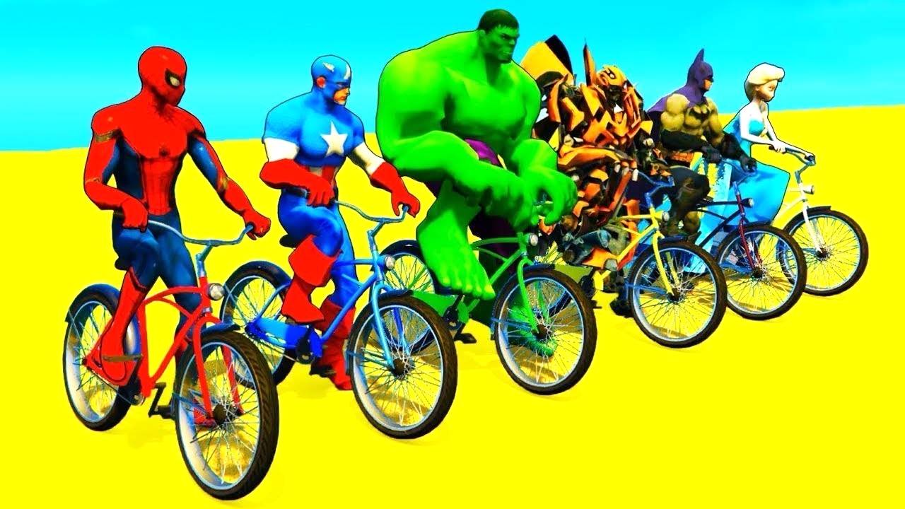 Человек-паук Мультфильм Цветные Велосипеды и Мотоциклы Супергерои Веселая Анимация для Детей