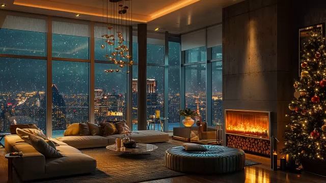 Ночной джаз, расслабляющая музыка – атмосфера элегантной квартиры и снегопад, звуки камина ?