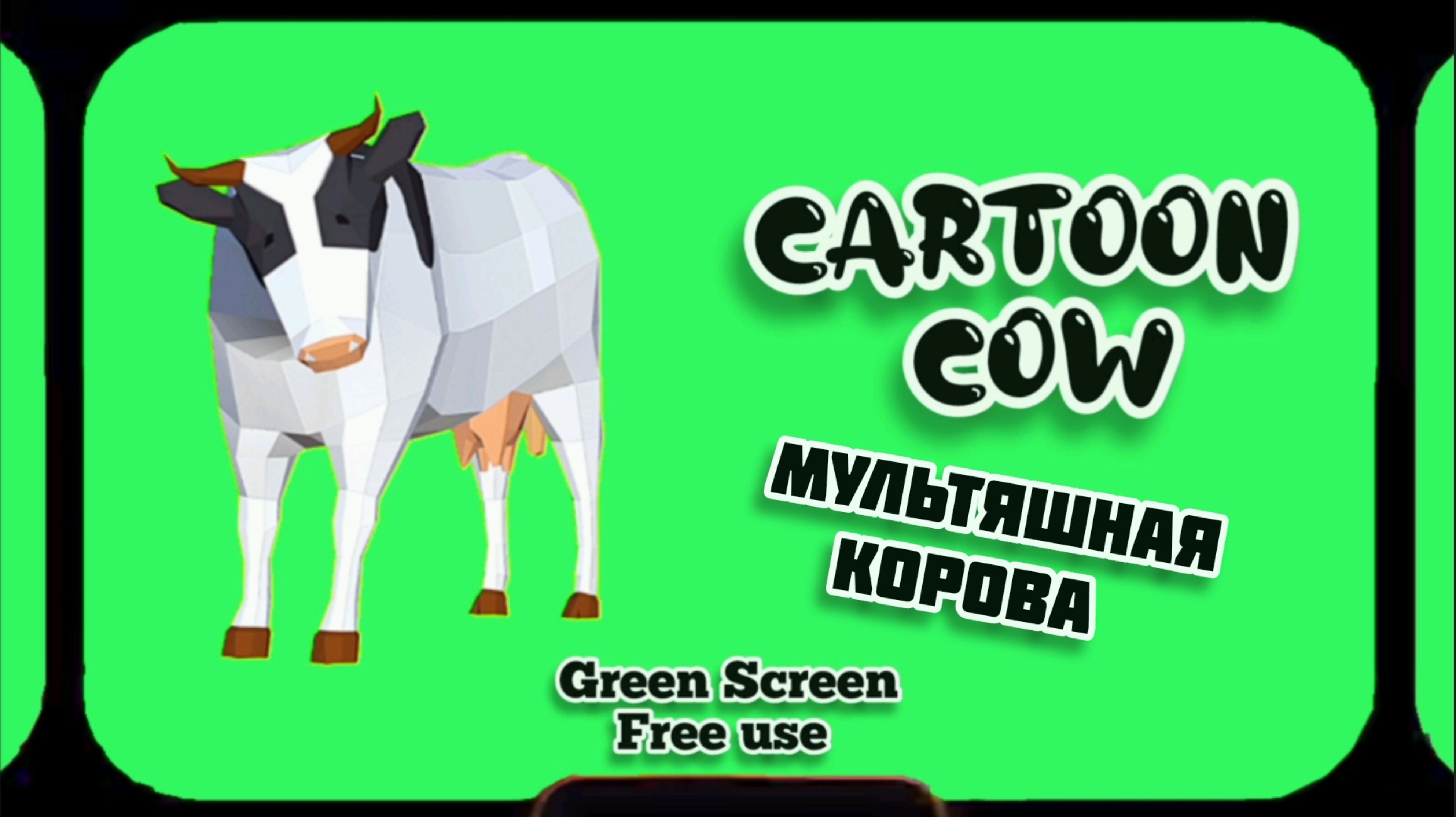МУЛЬТЯШНАЯ КОРОВА видео Green Screen футаж. ХРОМАКЕЙ АНИМАЦИЯ на зелёном фоне.