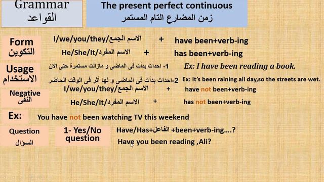 لمشاهدة المزيد فضلا اضغط الرابط https://www.youtube.com/watch?v=gDz-PSJNuAg&t=592s كل شىء عن زمن المضارع التام المستمر | The present perfect continuous