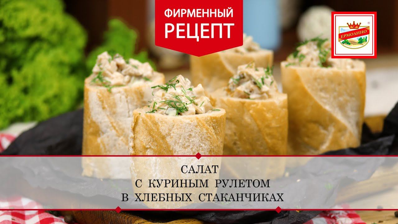 Салат с куриным рулетом в хлебных стаканчиках видео | ПРОДУКТЫ ЕРМОЛИНО – Вкусные рецепты