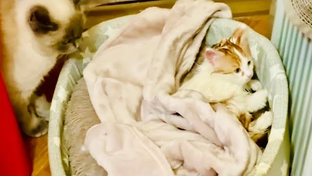 Мы спрятали котят Карамельку и Коржика, но папа кот их нашел и не отходит ни на минуту)))