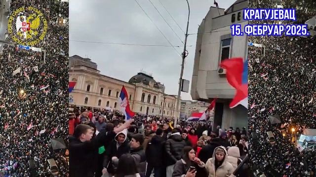 Крагујевац, Сретење 15. фебруар 2025. студентски скуп уз огромну подршку народа. Програм Руско-Србског Савеза 1) Ми смо пред собом, у првом реду поставили решавање економских и социјалних питања. Хоћемо да поставимо Србију на ноге, да од ње направимо социјално орјентисану државу са праведном расподелом резултата рада. То подразумева масовно стварање радних места са достојним зарадама, заштиту права радника, гарантована радна места за омладину. Омладина је наш најзначајнији ресурс, не можемо допустити да финансирамо образовање и васпитавање деце, која ће радити и служити интересима других држава. Један од слободних праваца за перспективни развој је роботика, и у ту област се може усмерити делатност дела наше омладине. Србија треба да има хаб и транзит за нафту, гас, да кроз њу иду трговински путеви. Србија треба да има сопствену економију, јер се неће развијати за рачун страних инвестиција, јер странци својим инвестицијама решавају своје проблеме. У вези тога треба да вратимо социјалну и здравствену заштиту деце, радника и пензионера на ниво потребан за нормалан достојан живот. Србија треба да постане витрина – економска, социјална, технолошка. 2) Да би обезбедили будућност, потребно је бринути се о дечијем здравству и заштити права деце. Недопустиво је продавати децу ради органа или прављења норадреналина, узимати их из породице да би били дати бездетним или истополним породицама, или предати педофилима. Недопустиво је да се на нашој деци проводе медицински експерименти и испробавају нови лекови и вакцине. Недопустива је јувенална јустиција, која «штити» децу од родитеља. Трба нам достојни систем образовања и васпитања. Уџбаници за србску децу треба да се састављају и штампају у Србији. Нашој омладини треба да дамо истинску представу о окружујућем свету и нашој историји. Треба да се откажемо од Болонског система. Наша деца не треба да се баве погађањем, т.ј. решавањем тестова. Наша деца треба да размишљају стваралачки и треба да умеју да решавају било коју врсту задатака, треба да буду гаранција за нашу просперитетну будућност. 3) Биће покушаји да се аутономној покрајини Косово и Метохија да статус Карабаха. То није државни статус, али има виши статус (односно степен суверенитета) него република или аутономни крај. Запад ће то покушати да представи као победу Србије, али контролу над том територијом жели да задржи у својим рукама. Нећемо дозволити да се такав план оствари, јер је Косово и Метохија – СРБСКА ЗЕМЉА, то је НАША ЗЕМЉА!!! 4) За то је неопходна алијанса са РФ – јаке економске и културне везе, као и нераскидиве везе у области обезбеђења одбране и безбедности. Сматрамо да РФ треба да постане гарант безбедности на Балкану. 5) Потребна је писмена политика за решавање проблема Косова и Метохије, и ту нам текућа ситуација игра на руку. Једнополарни свет је нестао, Сад више нису у стању да одржавају поредак који су наметнули свету у последњих 30 година. САД ће ограничити своју зону утицаја на Тихоокеански регион. Пажња ће се са Балкана, који је Запад контролисао како би блокирао Русију, пренети на Западну Европу. Ратни планови – у страну Кине, са којом ће САД и њихови савезници ратовати за контролу Тајвана и Југо-Источне Азије. Уз то, рат морају да отпочну до 2030., после чега ће га САД изгубити, јер ће војна моћ Кине порасти до те мере да ће се 
