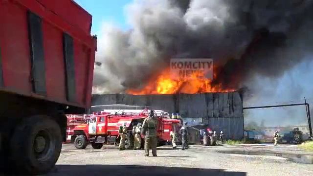 В Комсомольске-на-Амуре загорелся склад с маслом. Пожар локализован на площади 2 тыс. кв. м.