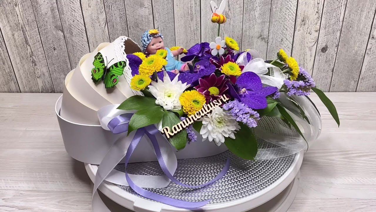 Букет на рождение ребенка в люльке