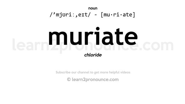 Muriate pronunciation | How to pronounce Muriate in English? /`mjʊriː,eɪt/ Meaning of Muriate | What is Muriate? chloride What is Muriate | Muriate meaning and definition?