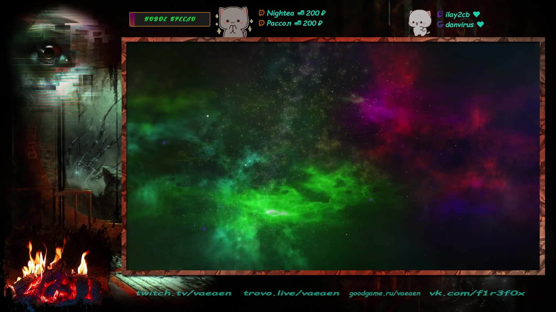 Если хотите поддержать меня как стримера - нажмите по данной ссылке https://www.donationalerts.com/r/f1r3f0x Donate for USD, EU all world - https://new.donatepay.ru/@vaeaen Во время стрима ваше сообщение появится на экране, и будет сопровождаться голосовым диктором. Поддержка на прямую: Сбер: 2202 2010 0629 1039 Тинькофф: 2200 7008 4677 0625 Основные каналы: Twitch: https://www.twitch.tv/vaeaen GoodGame: https://goodgame.ru/channel/Vaeaen/ Trovo: https://trovo.live/Vaeaen