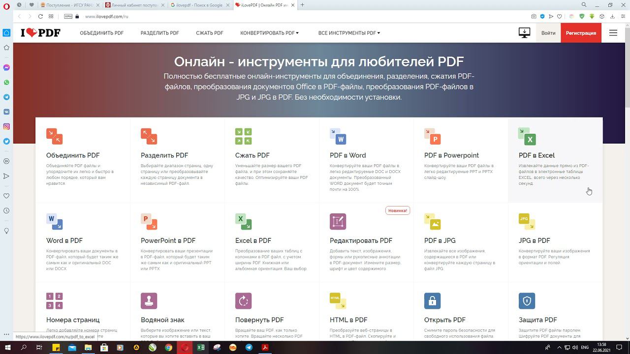 Объединение файлов в ILOVE PDF