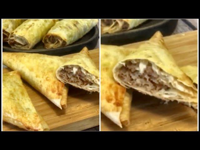 Закуски из лаваша и фарша. Самса ленивая. Не заметили как съели.