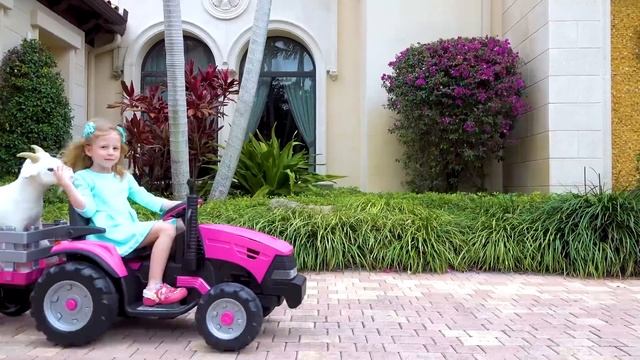 Настя играет в ферму с игрушками
