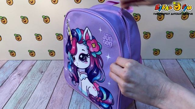 327586 Рюкзак JUNGER Единорог с цветной гривой лиловый