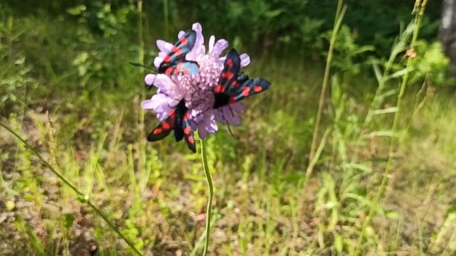 Три бабочки в горошек на одном цветочке!