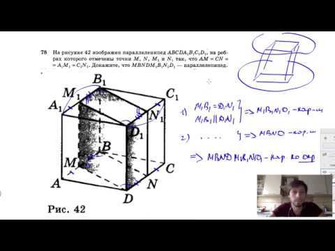 №78. На рисунке 42 изображен параллелепипед ABCDA1B1C1D1, на ребрах которого отмечены точки М, N, М1 и N1 так, что AM = CN=A1M1 = C1N1. Докажите, что MBNDM1B1N1D1 — параллелепипед. Поддержать канал рублём - 5469400944002125 (Сбербанк) Мой второй канал для подготовки к ЕГЭ и ОГЭ - https://www.youtube.com/ЕвгенийСумин Инстаграм - https://www.instagram.com/EGE_OGE.math Личный инстаграм - https://www.instagram.com/ee_sumin VK - https://vk.com/evgeniysumin FB - https://www.facebook.com/EvgeniySumin