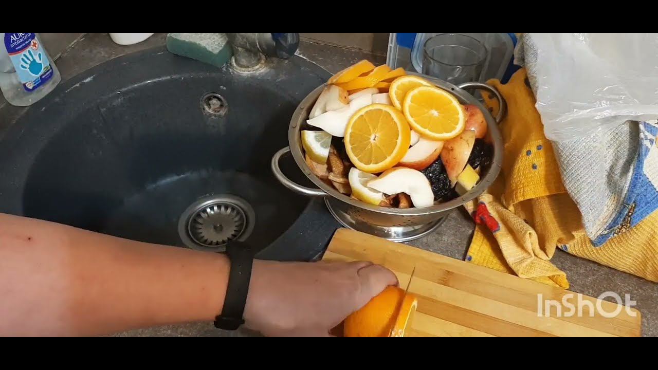 10 литров воды, 0,5 кг сахара, 2 груши, 0,6 кг компотной смеси, + 200 граммов чернослива, 2 апельсина порезать кружочками вместе со шкуркой и 0,5 лимона порезать также пятачками. Всё перемешать и поставить вариться на средний огонь, варить 30 мин после закипания. Остудить дождаться, когда ягоды и яблоки осядут. Вкусный насыщенный компот готов !!! ( мне на неделю хватит или на 4 дня). Приятного аппетита !!! Ягоды и фрукты тоже вкусные !!! А вкусно-то как !!! Подпишись и лайкни !!!
