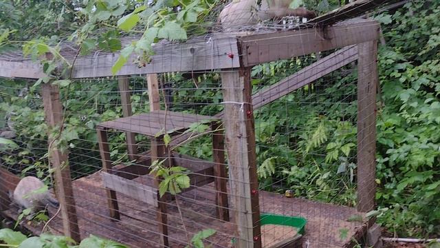 Котики проверяют вольер после дождя