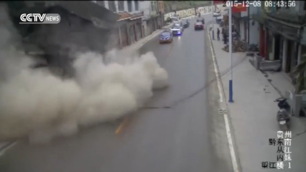 На юго-западе Китая 8 декабря 2015 года в результате разрушения опор несколько зданий "сползли" на проезжую часть. #здание #новости #китай #события #камера #автомобили