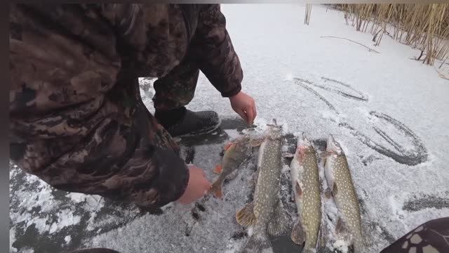 ЗИМНЯЯ РЫБАЛКА С ДРУЗЬЯМИ НА ЩУЧЬЕМ ПРУДУ! ЩУКА, ОКУНЬ НА ЖЕРЛИЦЫ И БАЛАНСИР. Астраханская рыбалка.