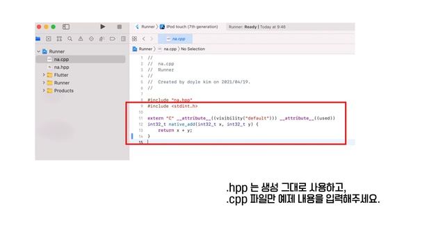 Android & IOS 설정을 다루고 있습니다, 파일 명, 위치, 내용 등을 참고해주시고 공식 홈페이지의 내용을 복사하여 붙이시면 편하게 테스트 해보실 수 있습니다!(Dart:FFi 는 카페에서만 다룰 예정입니다) * Doc : https://flutter.dev/docs/development/platform-integration/c-interop * Github : https://github.com/doyle-flutter/cFlutterFFi * Pub : https://pub.dev/packages/ffi * 네이버 카페 : https://cafe.naver.com/flutterjames * 온오프라인 수업 : https://taling.me/Talent/Detail/10726