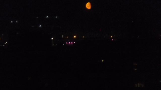 Мне как-тот раз поздно вечером посчастливилось увидеть кровавую луну. Это когда луна отражает красный цвет. Так бывает во время лунного затмения.