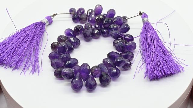 Бусины из аметиста капля гр.9-13мм на увеличение облепиха, 20см, 56 бусин, 33г