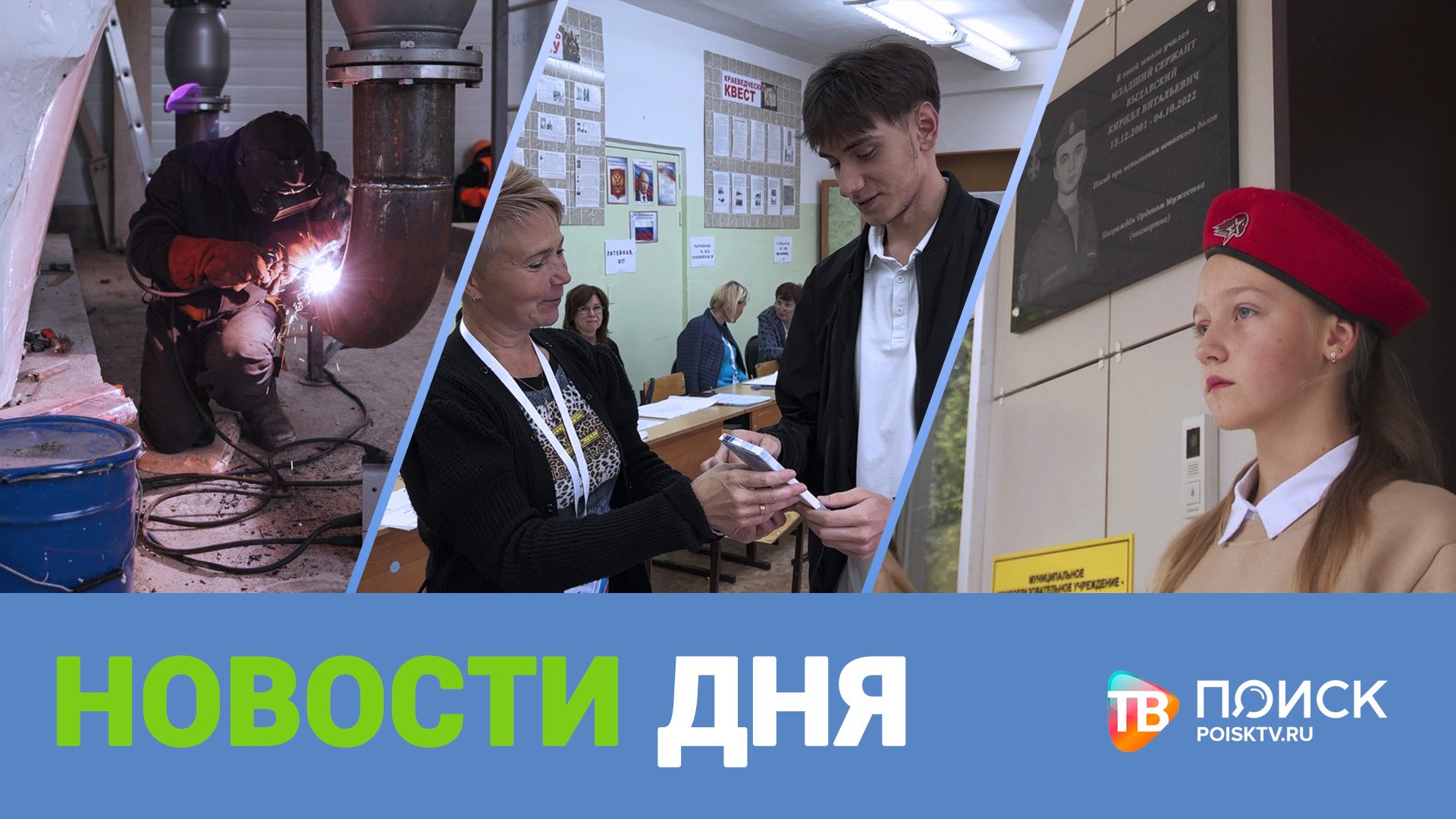 Большие выборы. В Подмосковье голосует за губернатора. Сделать выбор можно в течение трех дней.Такой график доказал свою эффективность. И уже сегодня на избирательных участках довольно многолюдно. Чтобы помнили. Во втором отделении гимназии №2 открыли памятную доску, посвященную бойцу, погибшему при исполнении воинского долга. Младшему сержанту Кириллу Выдавскому было всего 20 лет. Библейская история. Завершена роспись южного фронтона Троицкого собора. Увидеть изображение теперь могут все. А впереди у художников еще много работы. Эврика для детей и взрослых. Два года назад распахнул свои двери для детей и взрослых еще один Центр образования. Здесь любой найдет себе занятие по душе. Об этом и не только в программе "Новости дня".