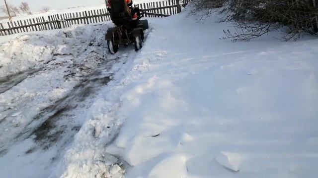Первая чистка снега. Минитрактор переломка.