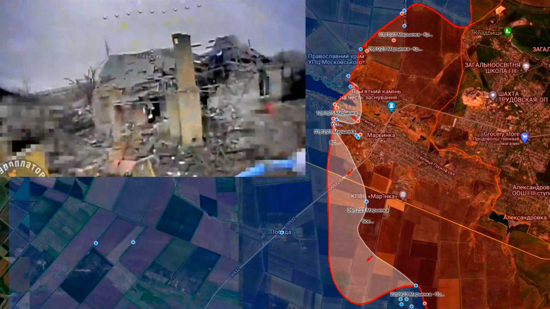 Карта боевых действий на Украине и в России. Бои около Марьинки. Противник слабеет