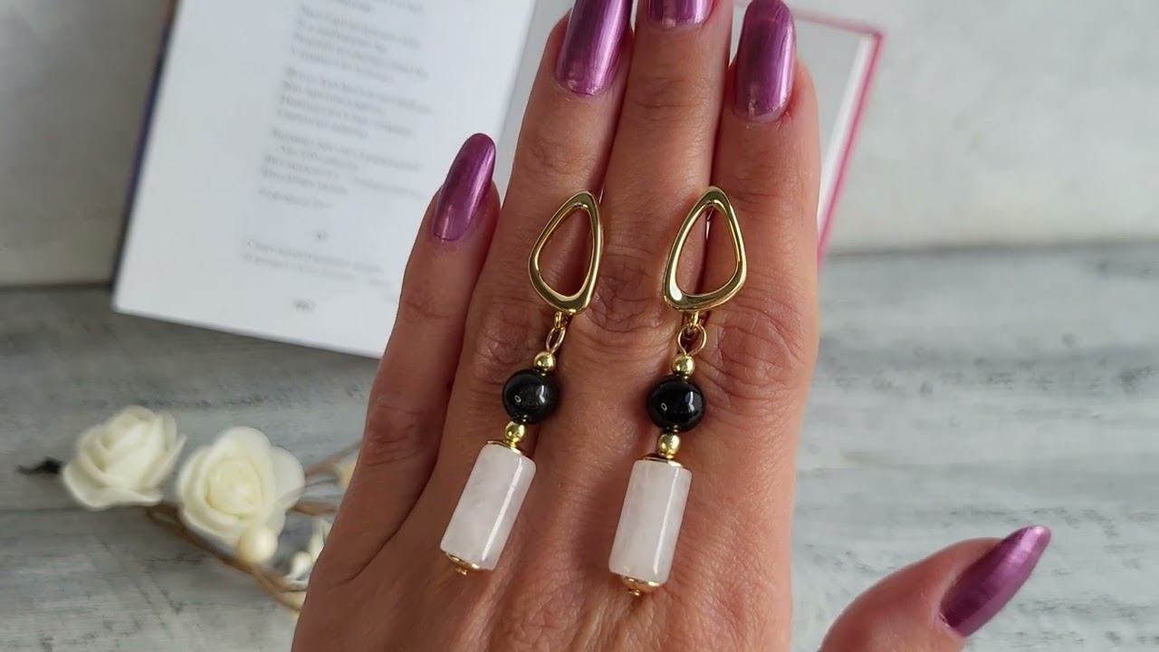 Серьги из обсидиана, горного хрусталя