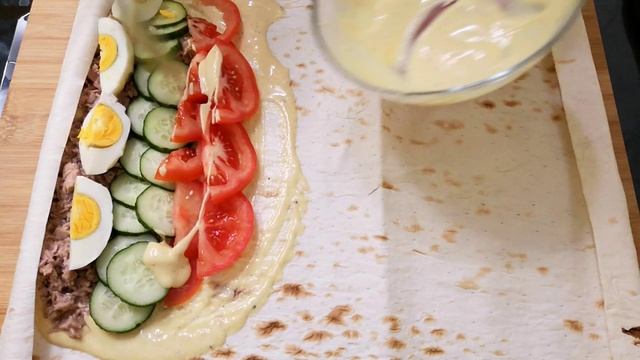 Закуска из Лаваш с тунцом и йогуртом