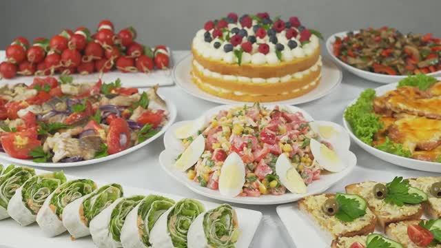 Меню рассчитано на 8–10 гостей и включает в себя два оригинальных салата, хрустящую закуску на шпажках, аппетитные бутерброды с нежнейшей печенью трески, свежий рулет из лаваша с зеленью и лососем, ароматную рыбу с овощами, сочную свинину под золотистой сырной шапочкой и, конечно же, десерт — потрясающий домашний торт с малиной. Итак, приступим! 1. Торт с малиной 00:00 ✅ИНГРЕДИЕНТЫ: Бисквит (форма 21 см): яйца - 6 шт. мука - 150 г сахар - 130 г соль - 1 щепотка Крем: творог 9% - 400 г масло сливочное - 300 г сгущенка - 100 мл сахарная пудра - 100 г Сироп для пропитки: сахар - 1/2 стакана вода - 1/2 стакана Малиновый джем: малина - 250 г сахар - 60 г крахмал - 1 ст. л. Для украшения: малина голубика мята ✅ПРИГОТОВЛЕНИЕ: Разделяю яйца на желтки и белки, добавляю щепотку соли и сахар. Белки взбиваю до устойчивых пик, постепенно добавляя желтки и муку. Бисквит отправляю в духовку при температуре 180 градусов примерно на полчаса, пока он не станет красивым золотистым. После остывания аккуратно разрезаю на три коржа. Теперь займемся восхитительным малиновым джемом. Малину перемешиваю с сахаром и крахмалом, провариваю до загустения на слабом огне, а потом протираю через сито, чтобы избавиться от косточек. Для пропитки готовлю простой сахарный сироп, а затем делаю волшебный крем из мягкого творога, сладкого сгущённого молока и свежести сливочного масла с сахарной пудрой. Оба компонента соединяю вместе. Каждый корж щедро поливаю сиропом, намазываю слой малинового джема и покрываю слоем крема. Украсив верхушку яркими ягодами малины, голубой красавицей-голубикой и освежающей мятой, завершаю процесс. 2. Лаваш с зеленью и лососем 07:38 ✅ИНГРЕДИЕНТЫ: лаваш тонкий - 2 шт. лосось консервированный - 1 банка листья салата - 200 г майонез - 5 ст. л. петрушка - пучок укроп - пучок ✅ПРИГОТОВЛЕНИЕ: Лаваш смазываю тонким слоем майонеза, раскладываю кусочки свежего лосося и присыпаю свежей зеленью и салатными листьями. Аккуратно заворачиваю рулет, даю немного настояться и режу аккуратными кусочками прямо перед подачей. 3. Салат из баклажанов 09:53 ✅ИНГРЕДИЕНТЫ: баклажаны - 2 шт. перец сладкий - 1 шт. чеснок - 1 зубчик петрушка (кинза) - 1 пучок масло растительное - 2 ст. л. уксус яблочный - 1 ст. л. соль - 1/2 ч. л. перец черный молотый - 1/2 ч. л. 👀ПОШАГОВОЕ ПРИГОТОВЛЕНИЕ СМОТРИТЕ В САМОМ ВИДЕО 4. Салат с яйцами 12.39 ✅ИНГРЕДИЕНТЫ: яйца вареные - 2 шт. помидоры - 2 шт. сыр - 100 г кукуруза консервированная - 1/2 банки (150 г) майонез - 3 ст. л. петрушка - пучок 👀ПОШАГОВОЕ ПРИГОТОВЛЕНИЕ СМОТРИТЕ В САМОМ ВИДЕО 5. Бутерброды с печенью трески 14:37 ✅ИНГРЕДИЕНТЫ: батон - 1 шт. печень трески - 1 баночка яйца вареные - 2 шт. майонез - 2-3 ст. л. огурец - 1 шт. помидор черри - 2-3 шт. оливки зеленые - 1 банка петрушка 👀ПОШАГОВОЕ ПРИГОТОВЛЕНИЕ СМОТРИТЕ В САМОМ ВИДЕО 6. Закуска с помидорами и мини моцареллой 17:35 ✅ИНГРЕДИЕНТЫ: моцарелла мини - 300 г помидоры черри - 500 г базилик - 3-4 веточки шпажки 👀ПОШАГОВОЕ ПРИГОТОВЛЕНИЕ СМОТРИТЕ В САМОМ ВИДЕО 7. Рыба с овощами 19:12 ✅ИНГРЕДИЕНТЫ: хек - 500 г помидоры - 5 шт. лук - 2 шт. соль перец черный молотый масло растительное Маринад: лимон - 1/2 шт. чеснок - 1 зубчик масло растительное - 2 ст. л. перец черный молотый соль ✅ПРИГОТОВЛЕНИЕ: Филе хека нарезается порционно, маринуется в смеси цитрусового аромата лимона, пряного чеснока и растительного масла. Овощи слегка тушатся в духовке примерно 20 минут при 180 градусов, после чего отправляется ту